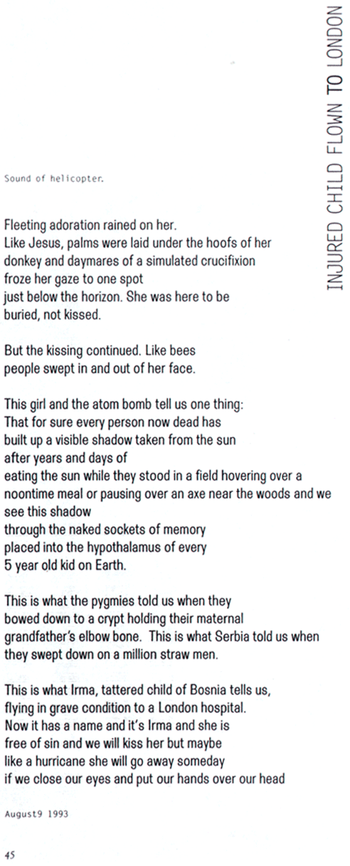 Many of the poems published in my 1995 book, Memo To All Employees, were direct daily responses to John F. Burns news articles. Here’s our discourse on Irma Hadžimuratović.