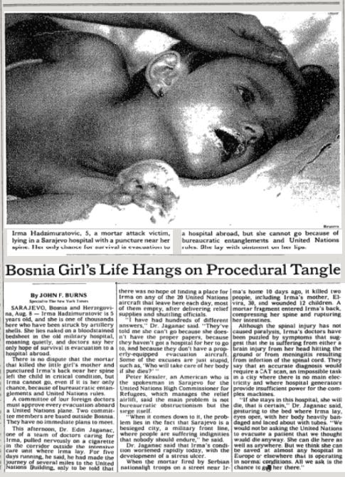 Bosnia Girl’s Life Hangs on Procedural Tangle: story containing the photo of Irma that kicked off Injured Child Flown to London