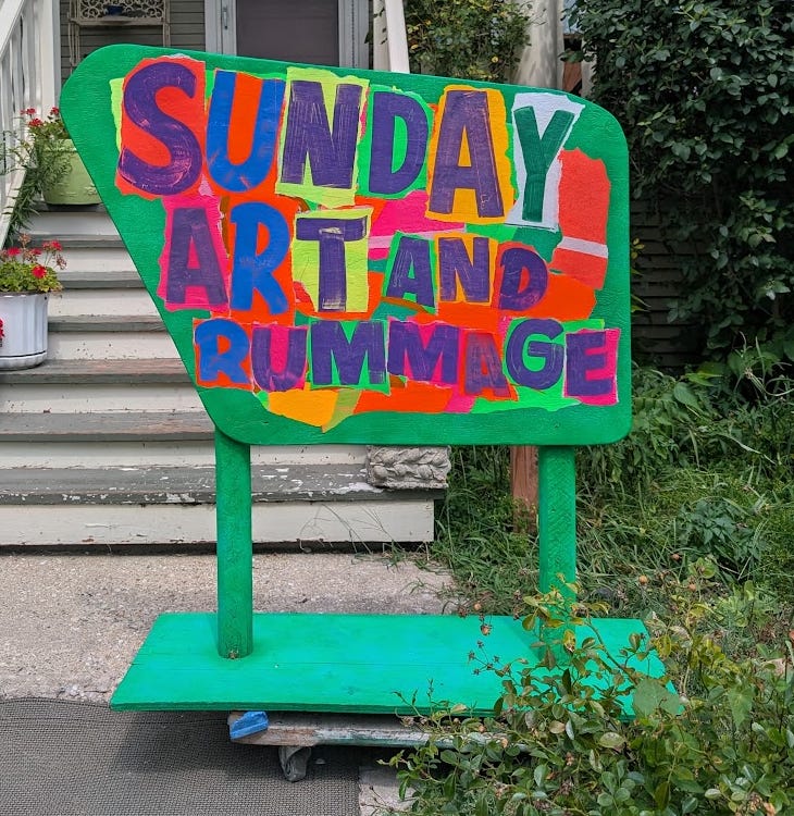 Recently he reminded me that I took part in a subscription offer that he made around the time that he began making his shift. He typically numbers his work made in editions, and he had set aside #11 for us. So we went to Sunday Art and Rummage to pick them up.